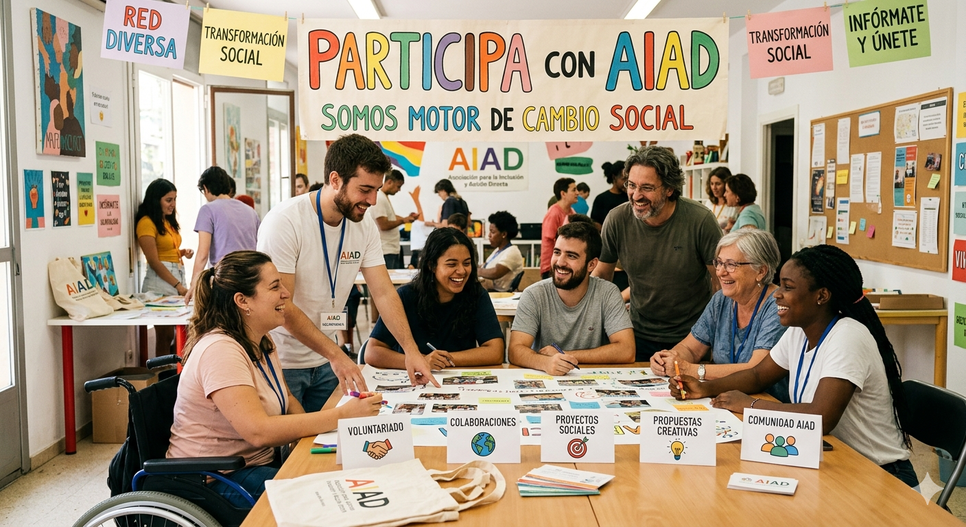 En AIAD creemos en la participaciรณn como motor de cambio social. Invitamos a todas las personas a formar parte de nuestras iniciativas y contribuir a la construcciรณn de una sociedad mรกs inclusiva y solidaria.